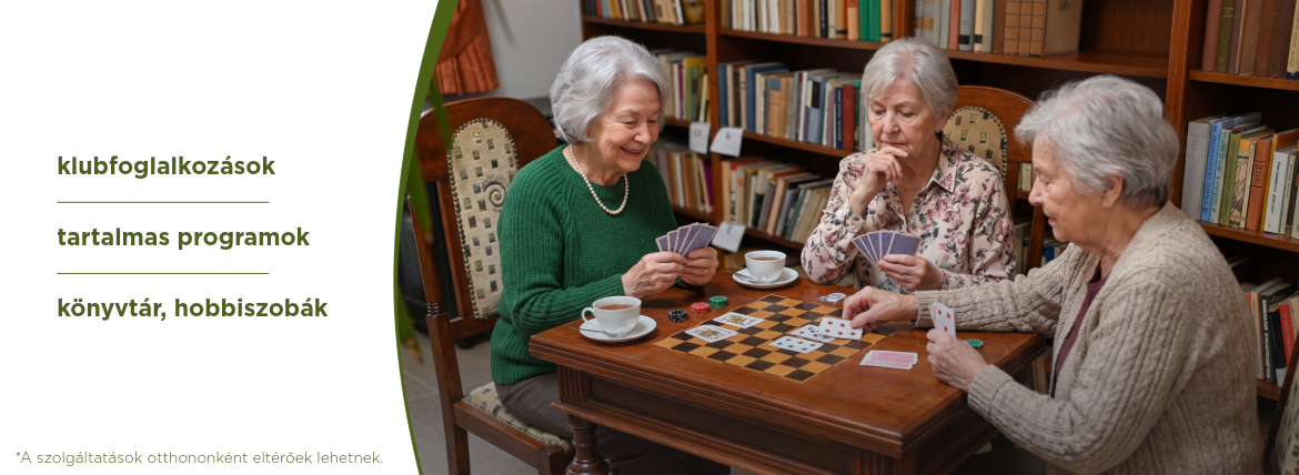 a társaságot kereső egyedül élők, és az önálló életvitelben – memóriazavar, demencia vagy Alzheimer-kór által – akadályozott idősek egyaránt biztonságos otthonra, állapotuknak megfelelő, egyénre szabott ellátásra találnak, preferenciáktól függően: széleskörű egészségügyi szolgáltatások, önálló apartmanok, inspiráló élettér kertekkel, parkokkal, tartalmas közösségi élet.