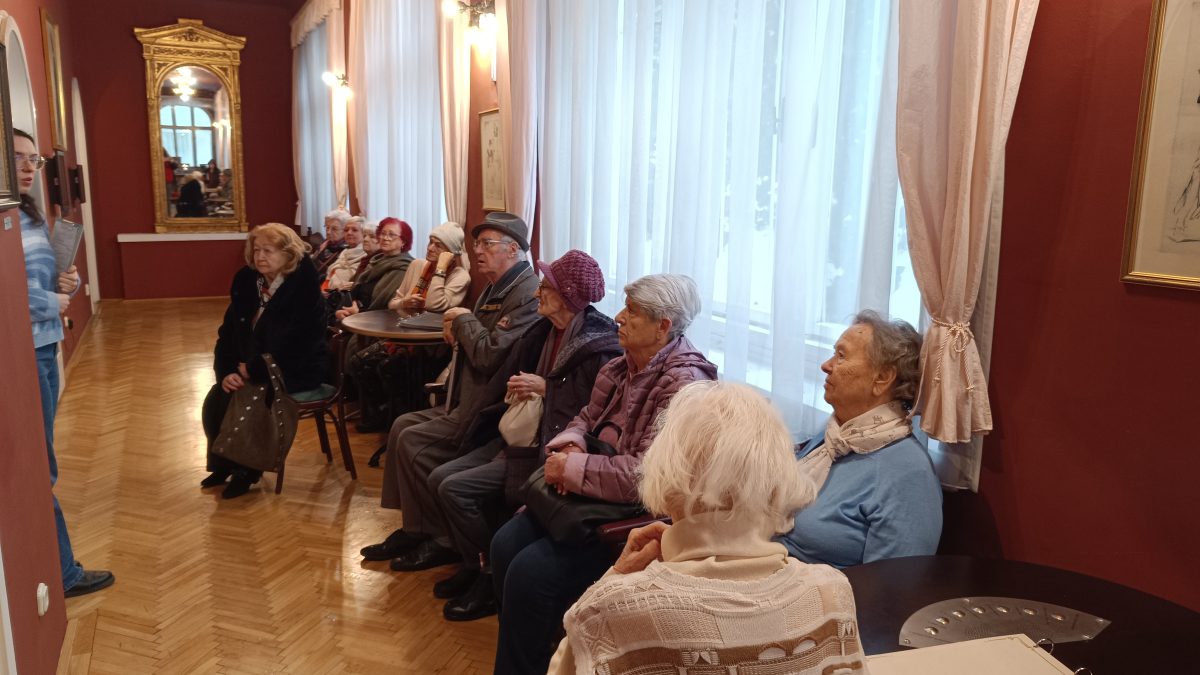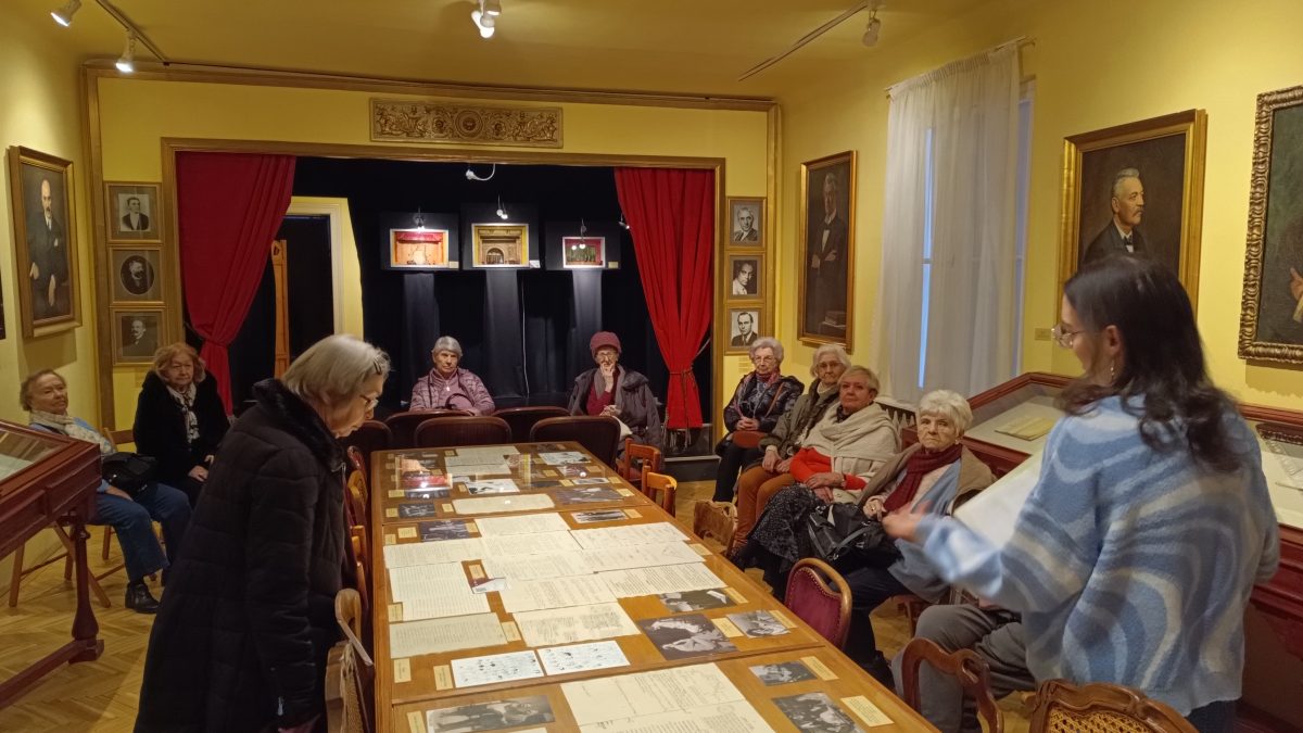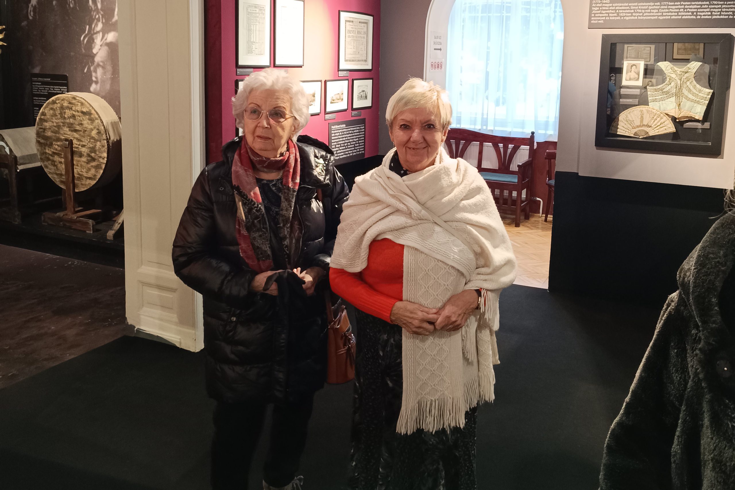A lakóink kedvtelve nézték a fotókat, megcsodálták a régi Nemzeti Színházból megmentett eredeti tárgyakat.