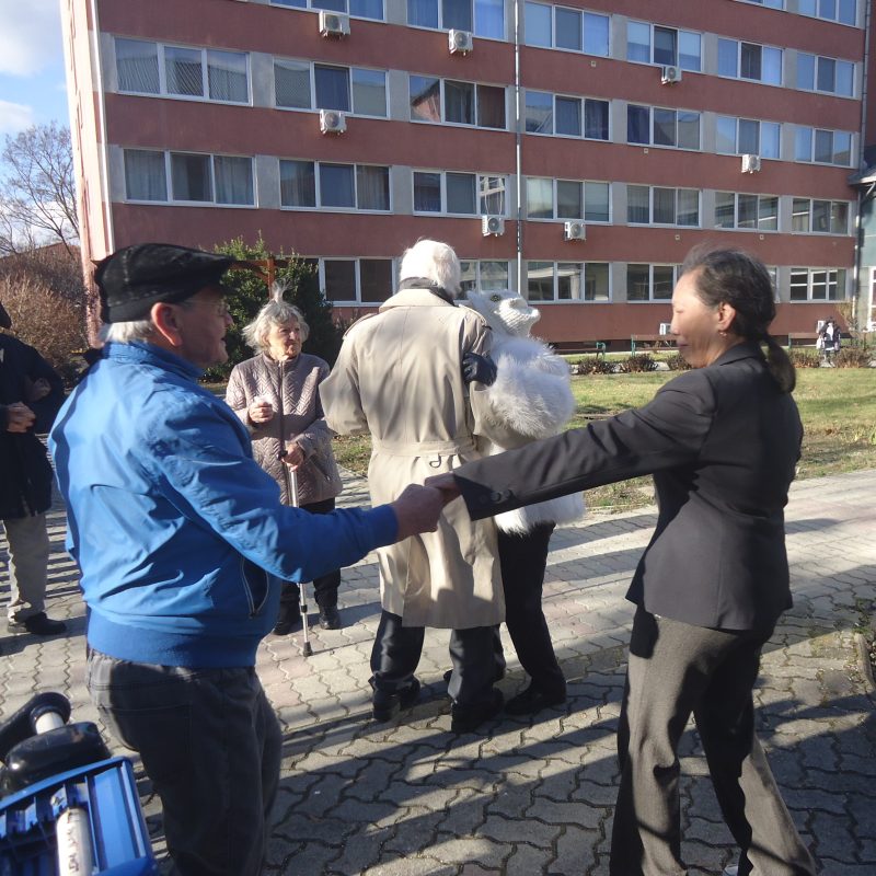 Nem titkolt szándékunk volt, hogy ezzel kicsalogassunk minél több lakót a szabad levegőre. Akik kijöttek, nagyon jól érezték magukat – többen táncra is perdültek. A legtöbben végig kitartottak az egyórás program alatt. Jókat beszélgettek, közösen énekelték a slágerszövegeket, élvezték a mostanság ritka napfényt.