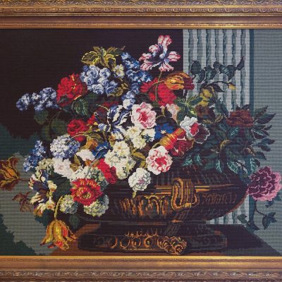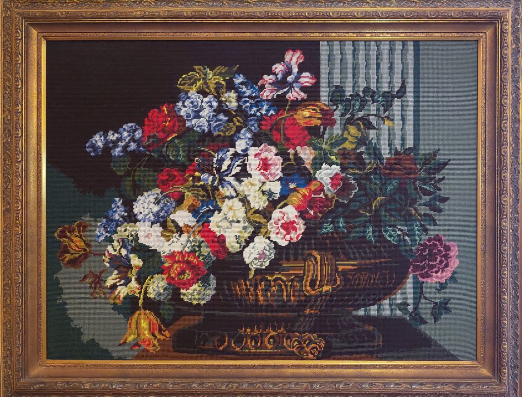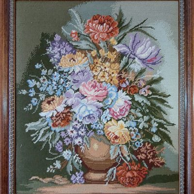Megrendelte az első mintákat, hozzá a fonalakat és már az első öltéseknél „szerelem” lett belőle. A gobelinhímzés rengeteg türelmet és aprólékos munkát igényel. Az alapokat egyedül sajátította el, és immár ötven éve hódol ennek a különleges kézműves művészetnek.